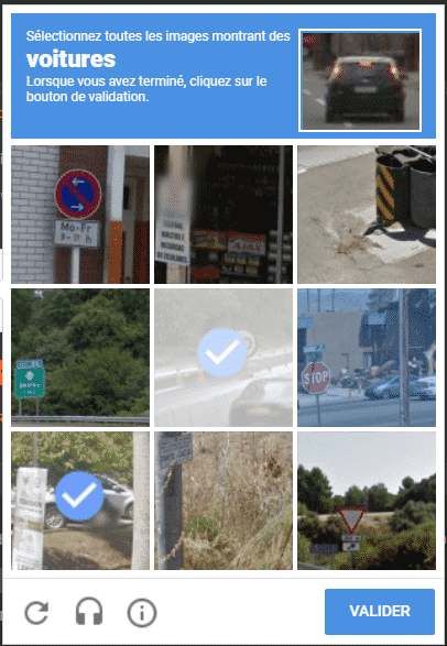 - 2014 (reCAPTCHA v2) : Enfin, avec la deuxième version de ***”reCAPTCHA“***, Google avait mis au point un système permettant d’analyser le comportement (naturel ou non) des utilisateurs lorsqu’ils remplissent un CAPTCHA, avec seulement une case à cocher et un test de logique si l’utilisateur est jugé suspect (les fameux vélos à trouver).